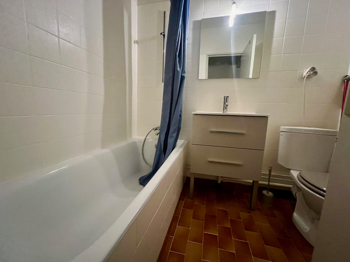 - 1 Salle de bains avec baignoire et WC de 3,2m²